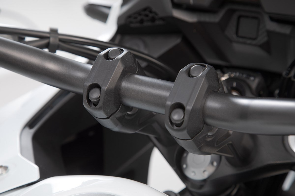 Diese speziell auf das Fahrzeug angepassten Lenkererhöhungen aus robustem, CNC-gefrästem Aluminium versetzt den Lenker um 20 mm nach oben und sorgt für spürbar mehr Fahrkomfort. Die stabile und witterungsbeständige Lenkererhöhung passt auf Lenker mit einem Durchmesser von 28 mm.