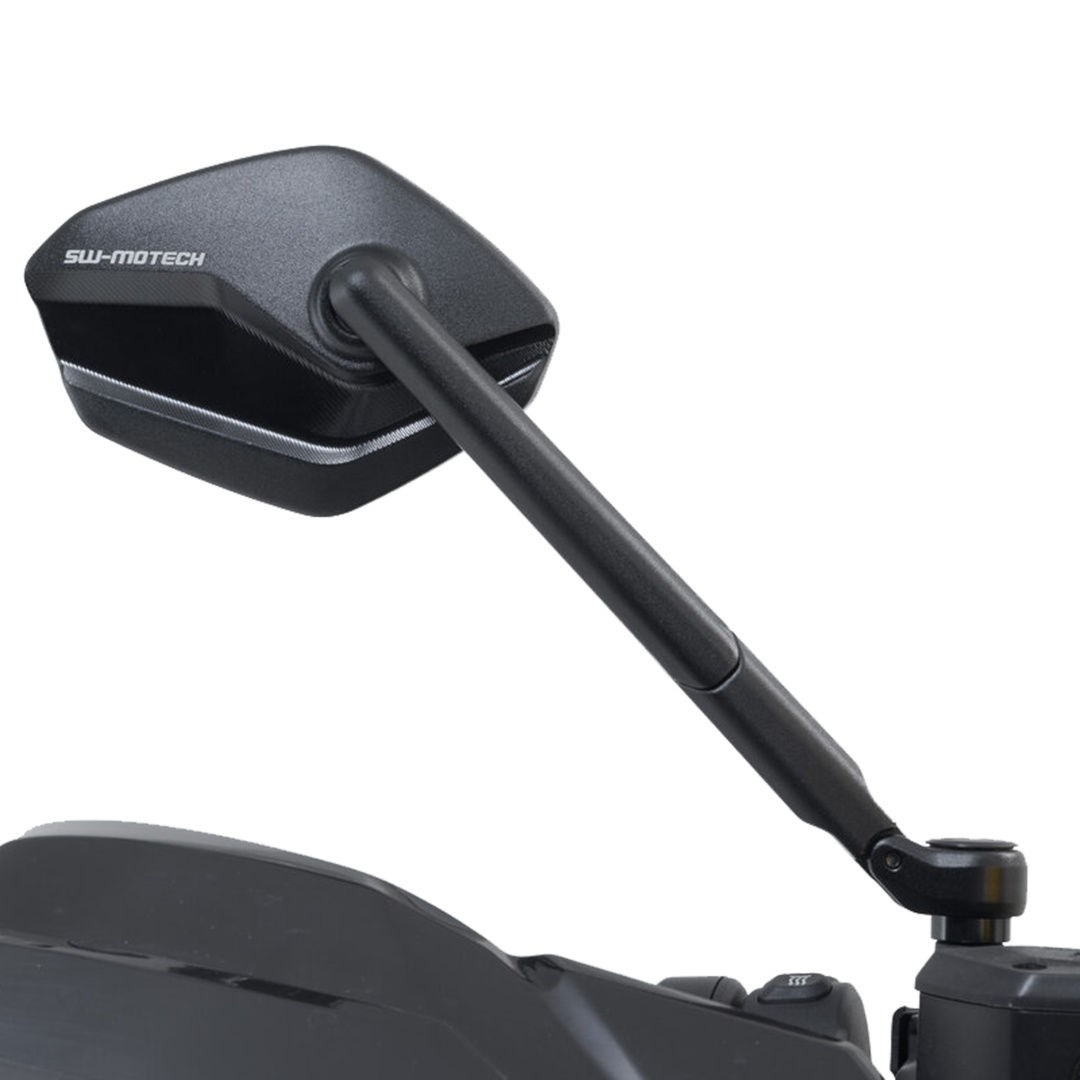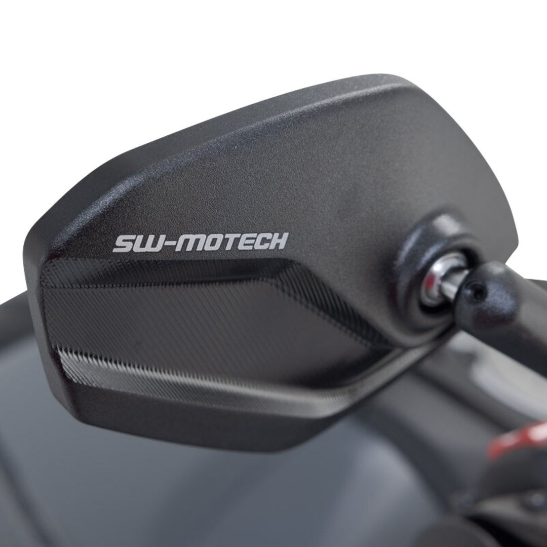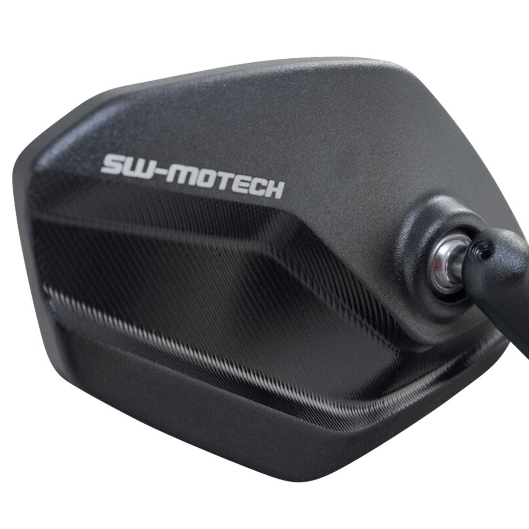 Die verstellbaren Spiegel im modernen und flachen Design fertigt SW-MOTECH aus schwarz eloxiertem Aluminium. Die Spiegelarme bestehen aus stufenlos verschiebbaren Elementen und sind jeweils um 30 Millimeter ausfahrbar. Die vielfältigen Einstellmöglichkeiten der Spiegel geben dem Piloten mehr Sicherheit durch besseren Überblick seines Umfeldes.
