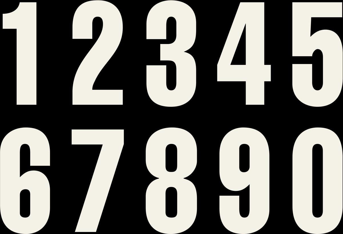 Selbstklebende Startnummern, Farbe weiss, 13 cm hoch.