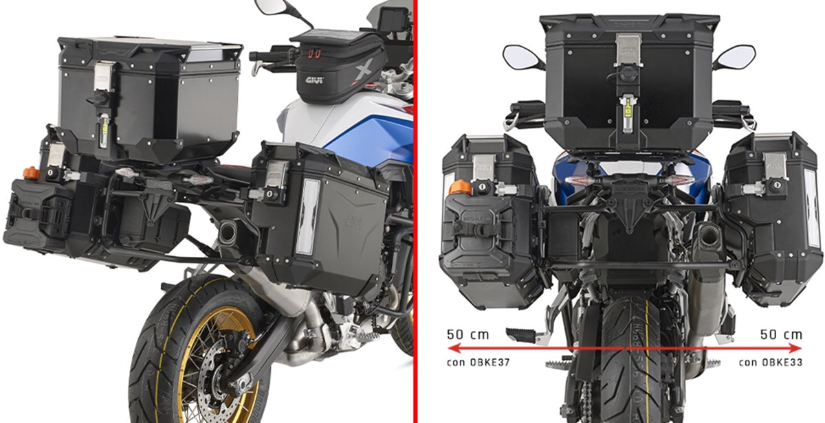 Spezifischer Stahlrohr-Seitenkofferträger PL ONE-FIT mit rechtem seitlichem Versatz für die Trekker Outback MONOKEY® CAM-SIDE-Konfiguration