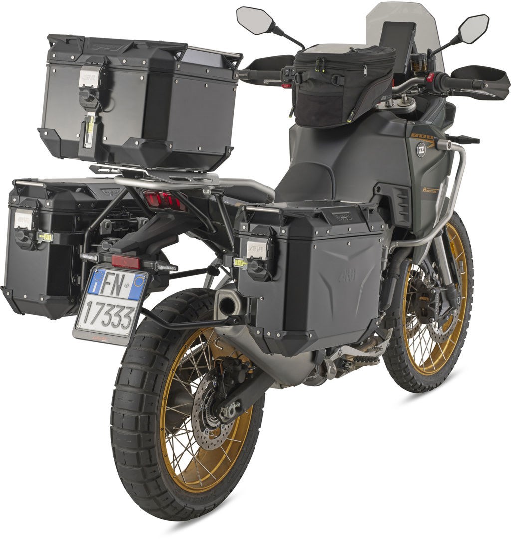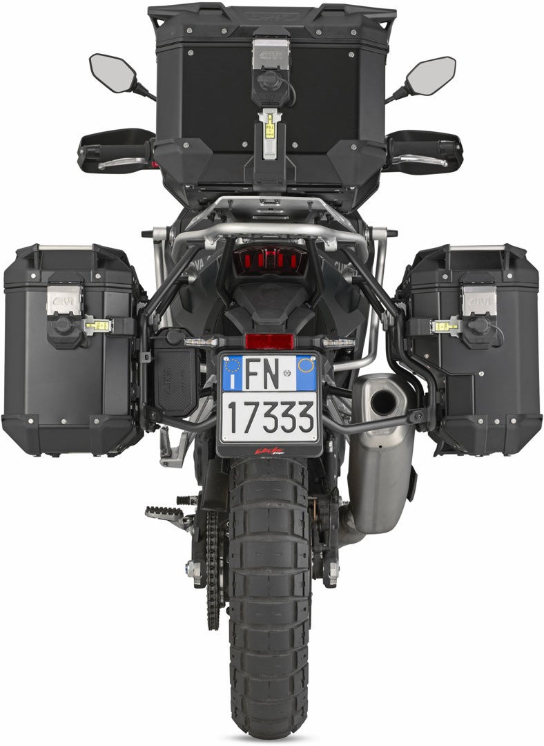 Spezifischer Stahlrohr-Seitenkofferträger PL ONE-FIT mit rechtem seitlichem Versatz für die Trekker Outback MONOKEY® CAM-SIDE-Konfiguration