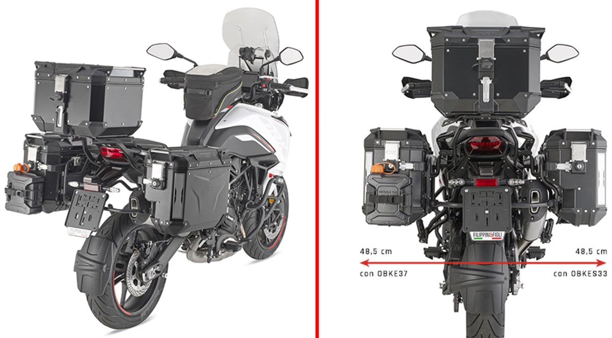 für die Montage mit dem Topcase Träger SR8719 wird das 8719KIT verwendet / Durchmesser 18 mm / die rechte Seite ist nur mit den Seitenkoffern mit seitlichem Versatz OBKEVS33, OBKEVS40 kompatibel / zu montieren mit 13RKIT für Umbau in Rapid Release Seitenkofferträger
