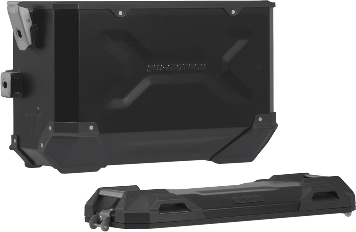 Die robusten TRAX ADV Alukoffer fühlen sich auf jeder Strecke zuhause: Designprägungen unterstützen die Stabilität des 1,5 Millimeter starken, geschweissten Aluminium-Wandmaterials. Ein komplett abnehmbarer Deckel mit Tragegriffen aus eloxiertem Aluminium und Schnellverschlüssen erleichtert Be- und Entladen der Motorradkoffer, die abgeschrägte Seitenkante gibt hohe Bodenfreiheit bei der Kurvenfahrt. Mit dieser Komplettlösung hast du alle benötigten Komponenten, um direkt mit TRAX auf grosse Reise zu gehen: Zwei wasserdichte TRAX ADV Seitenkoffer, zwei abnehmbare SW-MOTECH Seitenträger, Adapterkit, Schloss-Satz, Öffnungsbegrenzer und Diebstahlsicherung zum attraktiven Gesamtpreis. Die modellspezifischen Träger und die Grösse der Koffer sind perfekt auf Heckgeometrie und Auspuffanlage des Motorrades abgestimmt.