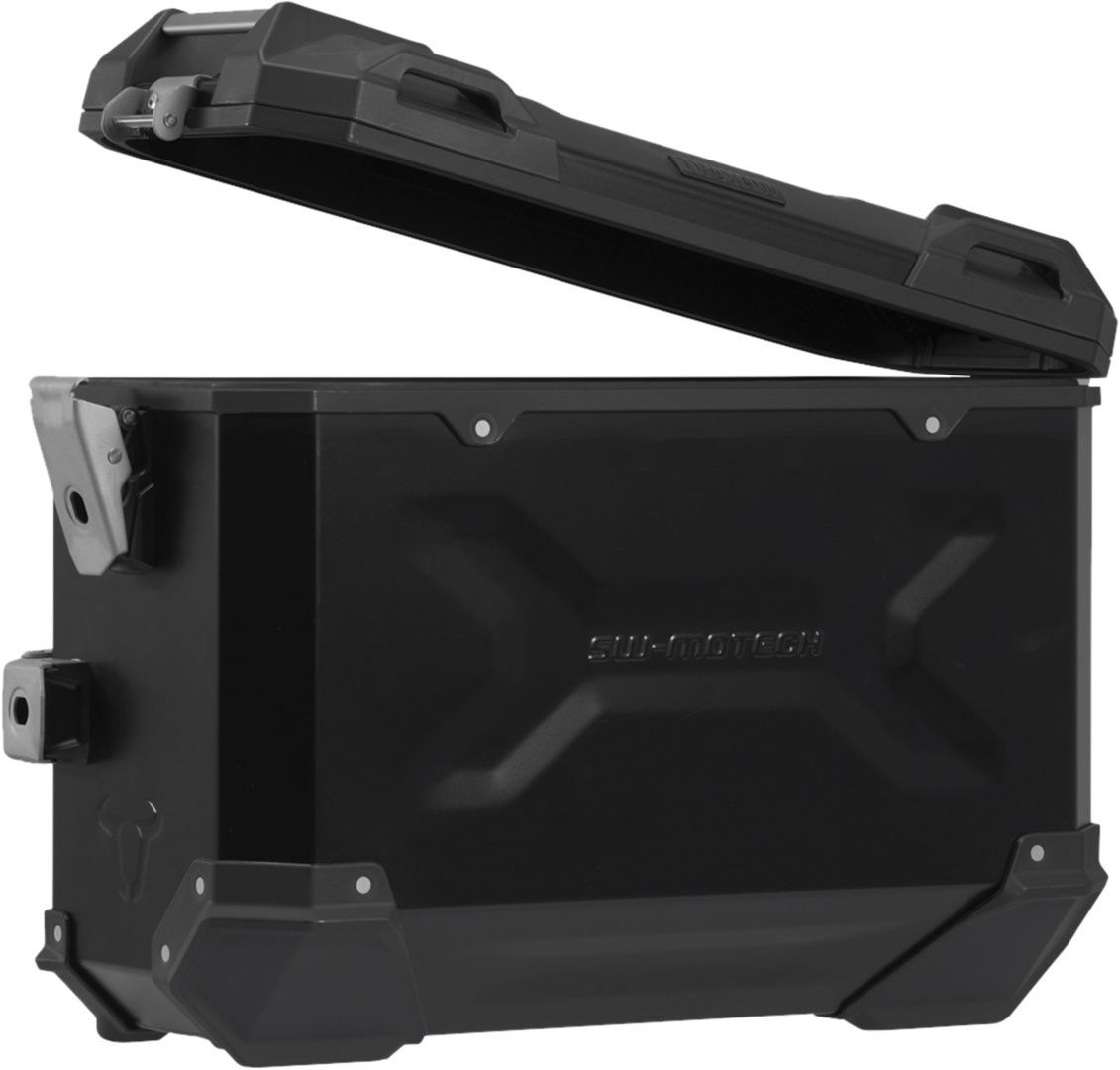Die robusten TRAX ADV Alukoffer fühlen sich auf jeder Strecke zuhause: Designprägungen unterstützen die Stabilität des 1,5 Millimeter starken, geschweissten Aluminium-Wandmaterials. Ein komplett abnehmbarer Deckel mit Tragegriffen aus eloxiertem Aluminium und Schnellverschlüssen erleichtert Be- und Entladen der Motorradkoffer, die abgeschrägte Seitenkante gibt hohe Bodenfreiheit bei der Kurvenfahrt. Mit dieser Komplettlösung hast du alle benötigten Komponenten, um direkt mit TRAX auf grosse Reise zu gehen: Zwei wasserdichte TRAX ADV Seitenkoffer, zwei abnehmbare SW-MOTECH Seitenträger, Adapterkit, Schloss-Satz, Öffnungsbegrenzer und Diebstahlsicherung zum attraktiven Gesamtpreis. Die modellspezifischen Träger und die Grösse der Koffer sind perfekt auf Heckgeometrie und Auspuffanlage des Motorrades abgestimmt.