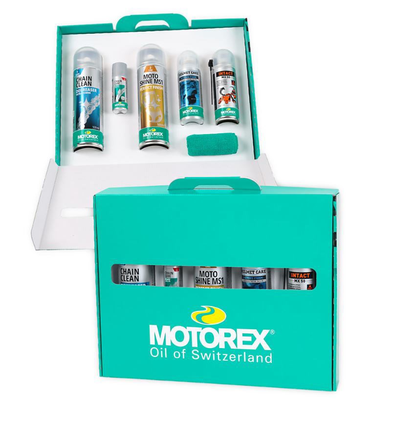 MOTOREX bietet Ihnen mit dem RIDE N’ SHINE SET eine breite Auswahl an technischen Sprays welche sich optimal für Ihr Motorrad eignet. Dabei werden alle Step’s von CLEAN, CARE AND LUBE abgedeckt. Zudem enthält es DAS Allzweckschmiermittel welches überall im Haushalt, Werkstatt, Hobbyraum usw. eingesetzt werden kann und zusätzlich noch ein Mikrofasertuch.