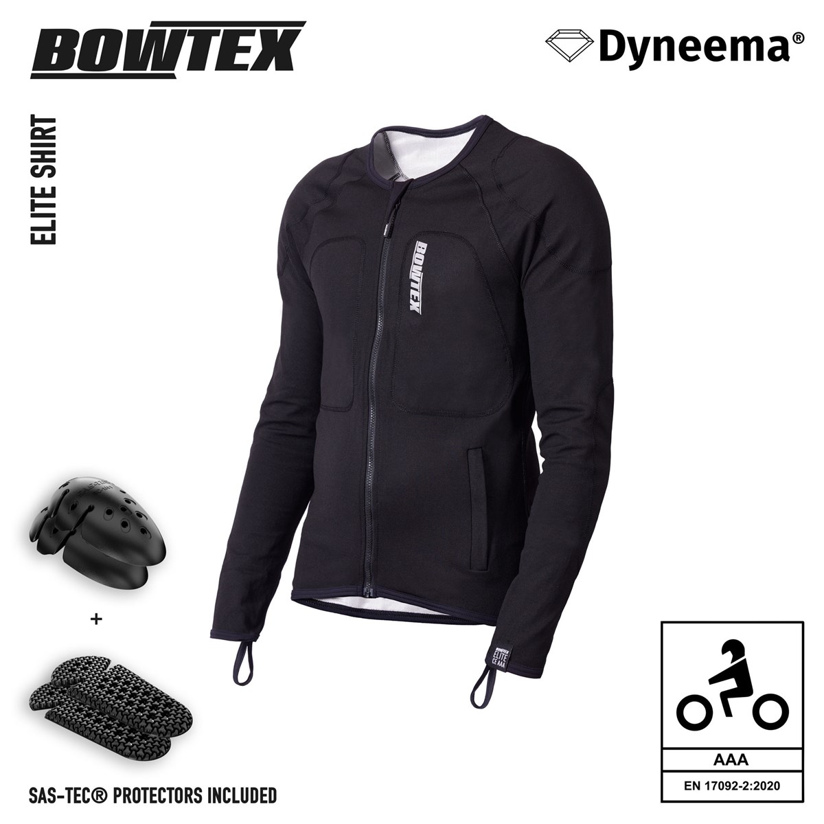 Bowtex Elite - der Name ist Programm! Es ist das Beste vom Besten in jeder Hinsicht! Extrem stark und trotzdem superleicht und atmungsaktiv. Es ist super atmungsaktiv und hinterlässt ein frisches Gefühl auf der Haut. Der dehnbare und weiche Stoff fühlt sich an, als würdest du eine erstklassige Sportunterwäsche tragen … eine unglaublich starke! Das Elite Shirt wiegt nur 1 000 Gramm, daher müsst Du keine Gedanken mehr an das Gewicht herkömmlicher Ausrüstung verschwenden: Der Entscheidung, dass Du nicht in voller Ausrüstung und dennoch in Deinem eigenen Stil fahren kannst, steht also nichts mehr im Wege.