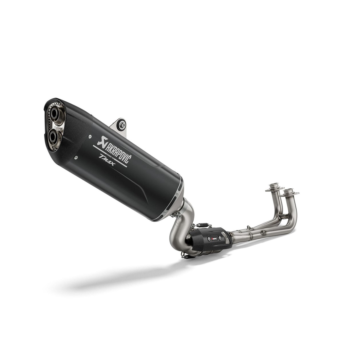 Verleihe deinem Yamaha TMAX einen Schub an Leistung, Sound und Stil mit dem Akrapovic Full System – Black. Die Krümmerrohre aus Edelstahl schliessen an den schwarzen Titan-Schalldämpfer mit schickem lasergraviertem TMAX-Logo an.